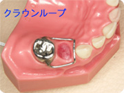 左の写真は永久歯が生えてくるまで隙間を維持するクラウンループです。