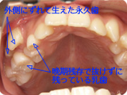 後から生えてくる永久歯が外側や内側から曲がって生えてくることがあります。